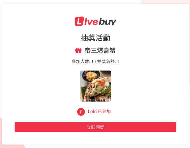 <figure><img src="https://705165073-files.gitbook.io/~/files/v0/b/gitbook-x-prod.appspot.com/o/spaces%2FV3NDyE2p2PVA02XxLVkM%2Fuploads%2FCzer6yOhvipD5hIiiLG9%2Fimage.png?alt=media&#x26;token=0faf3243-bba3-4a5a-b1fd-adf1c7206fc0" alt="" width="189"><figcaption><p>直播間中用戶抽獎頁面</p></figcaption></figure>