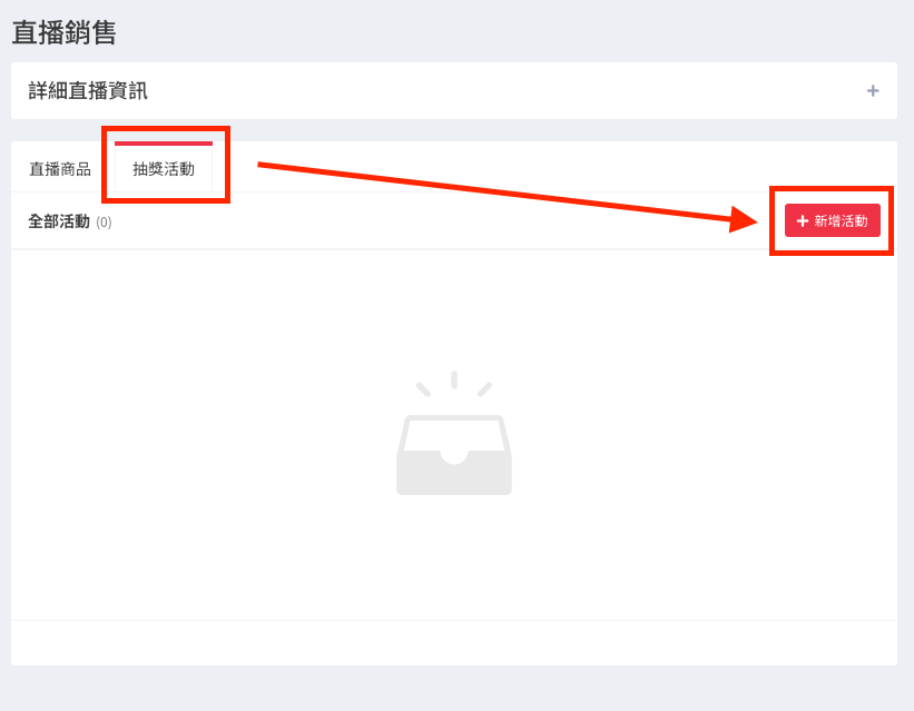 您可以於直播前或直播中新增抽獎活動，增加您與觀眾之間的互動，提升您的業績